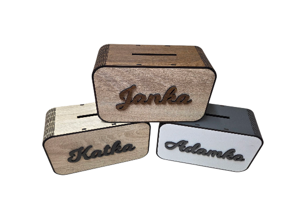 Drevená 3D pokladnička s menom alebo nápisom | Darček na mieru