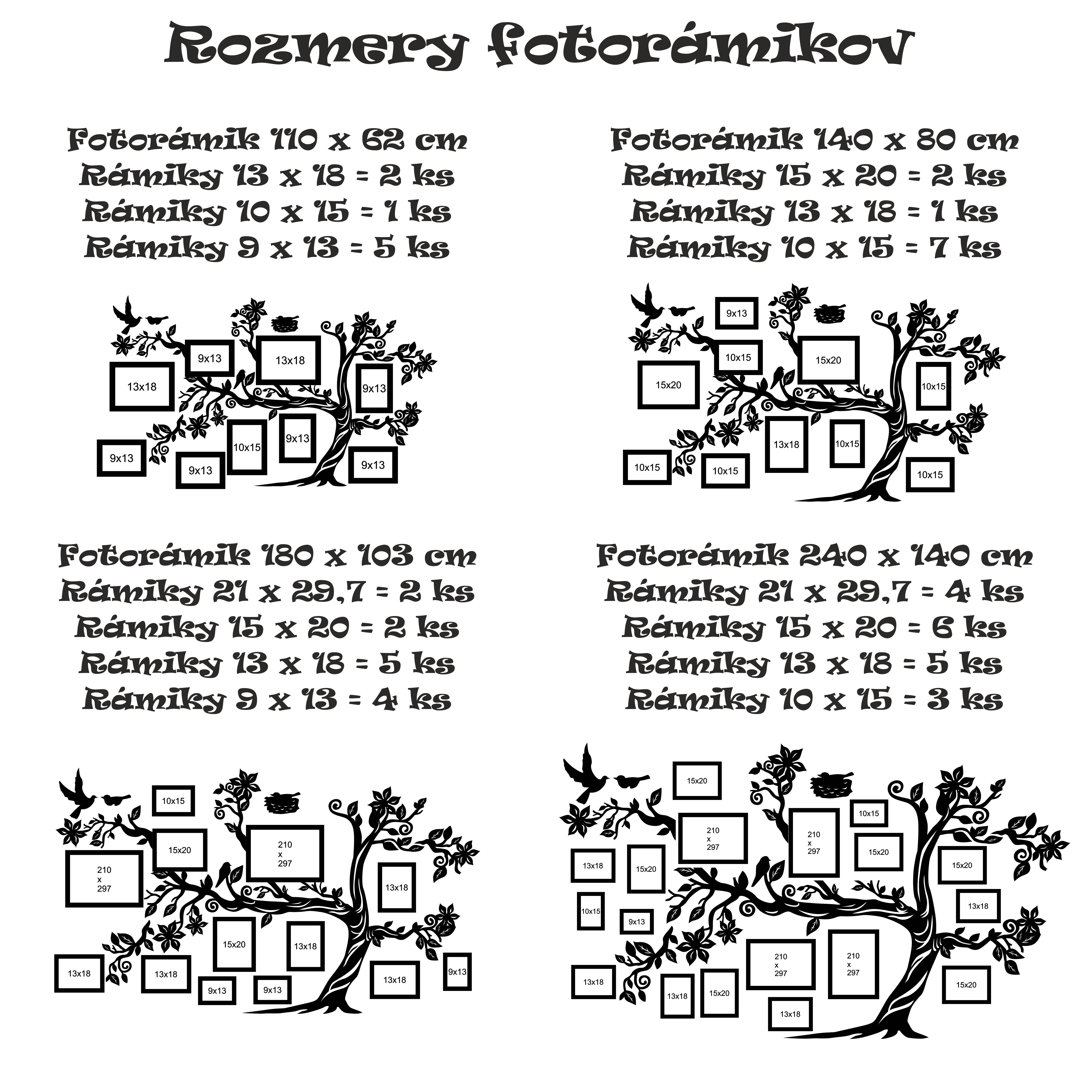 • rozmery fotorámikov a veľkosti fotografií sú zobrazené v galérii