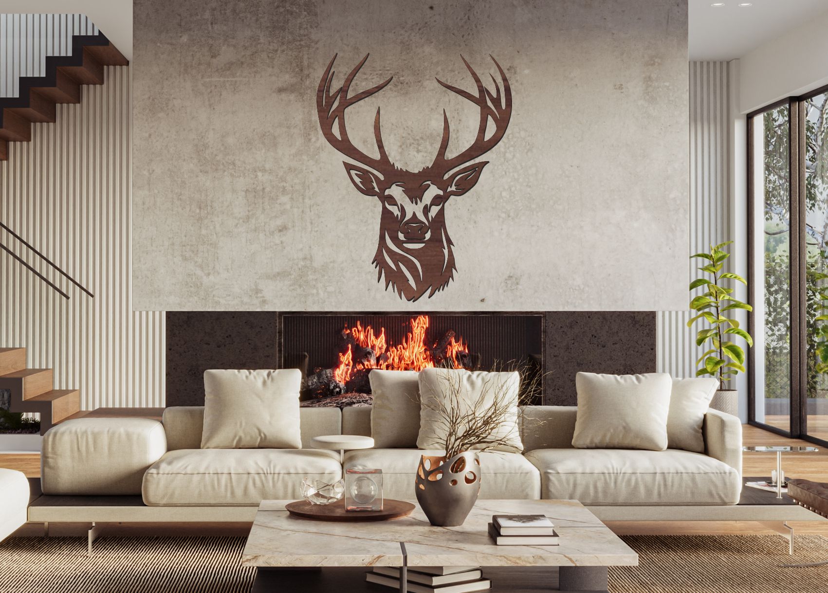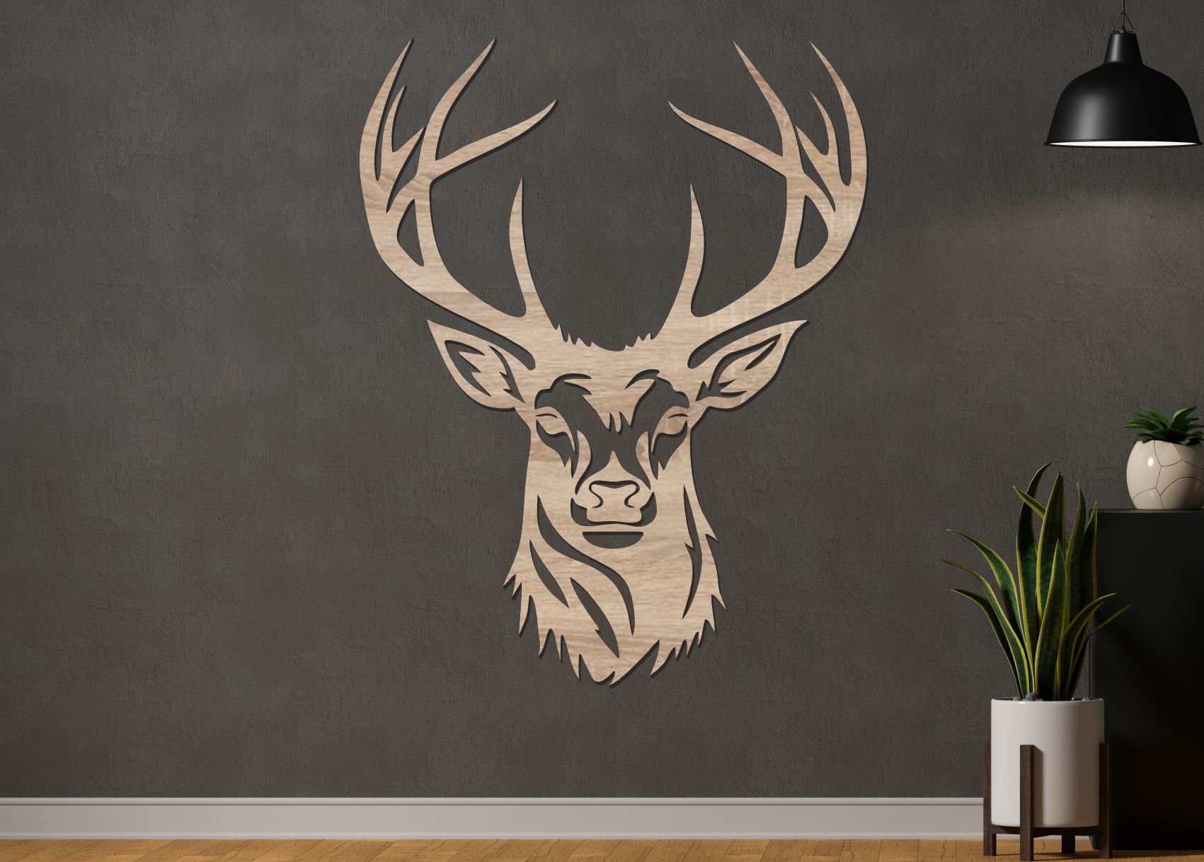 Drevený obraz – Hlava jeleňa je moderná a výrazná prírodná dekorácia, vhodná do obývačky, pracovne, na chatu či do poľovníckej miestnosti. Silueta jeleňa pôsobí elegantne, čisto a vďaka kontrastu krásne vynikne na akejkoľvek stene.