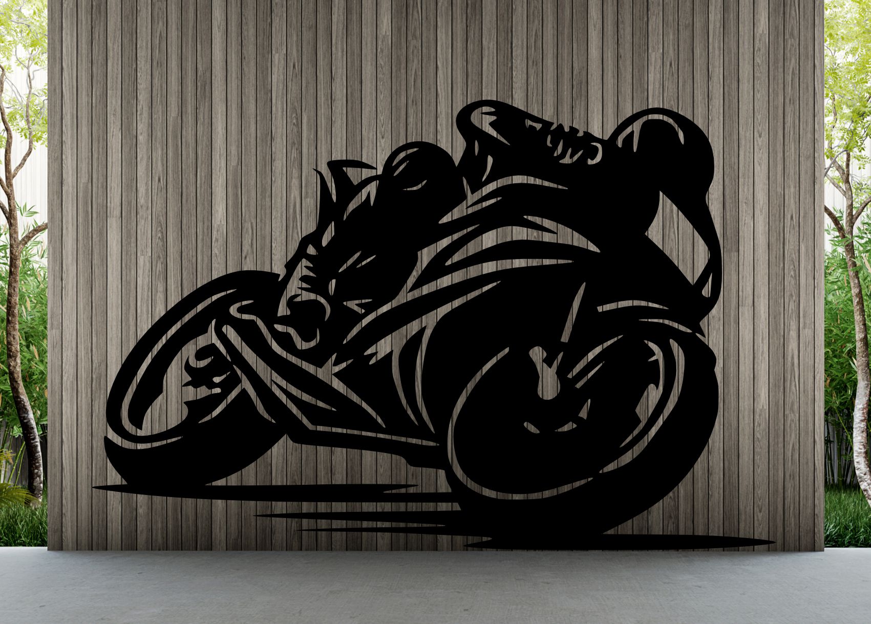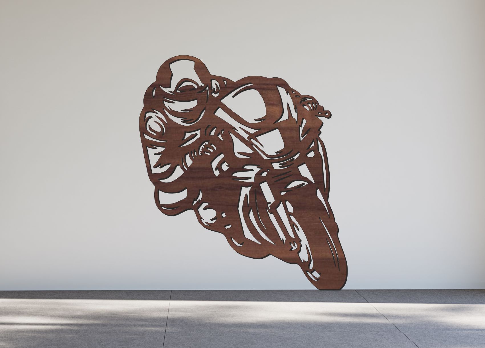 Drevený obraz Motorkár v plnej rýchlosti – dekorácia pre milovníkov adrenalínu