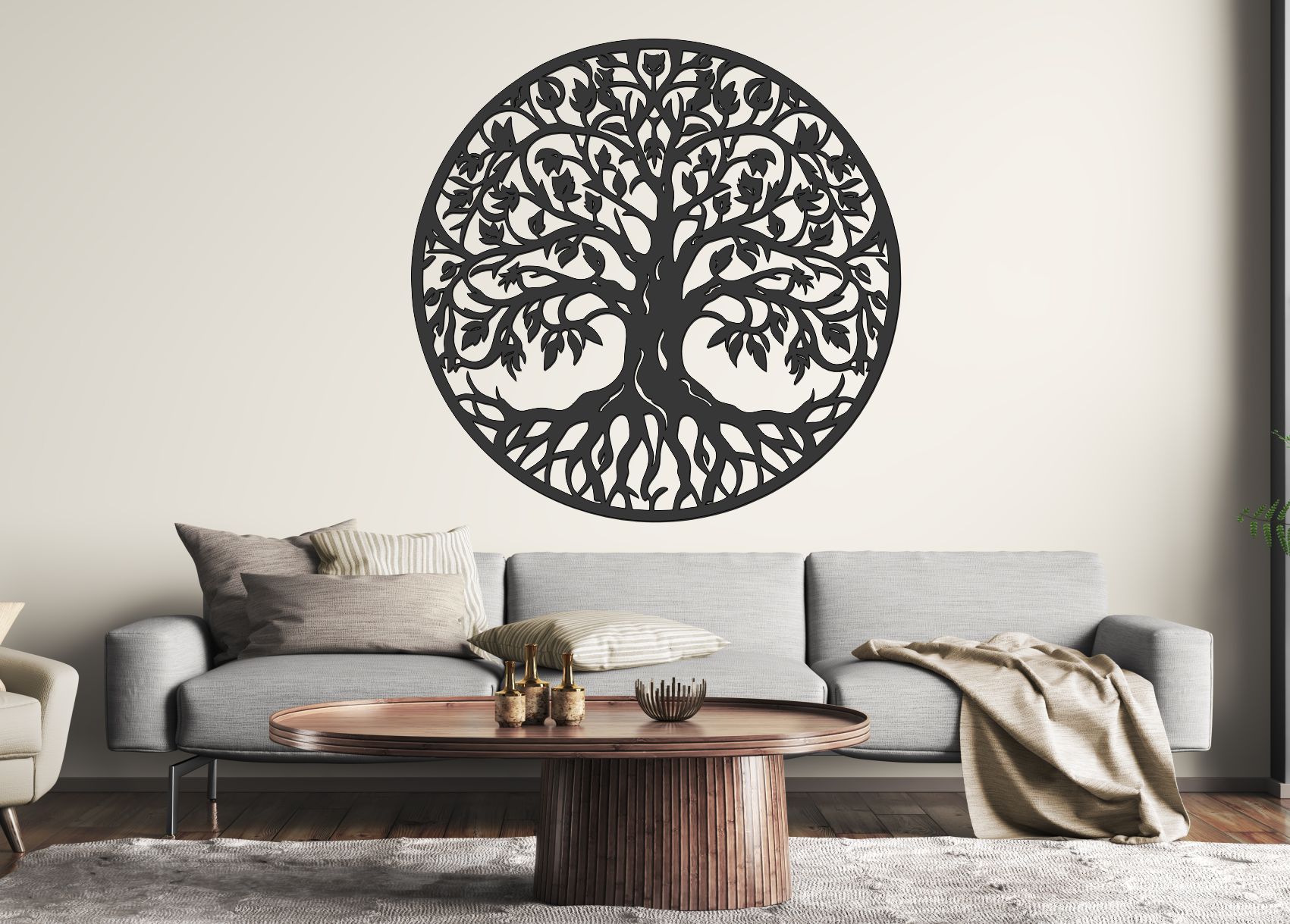 Drevený strom života na stenu v tomto prevedení zaujme prepracovanou korunou a výraznými koreňmi, ktoré symbolizujú stabilitu, rodinu a pevné základy. Ide o dizajnovo vyvážený model, ktorý sa hodí nad posteľ, do obývačky aj do moderného interiéru ako dominantná drevená dekorácia na stenu.