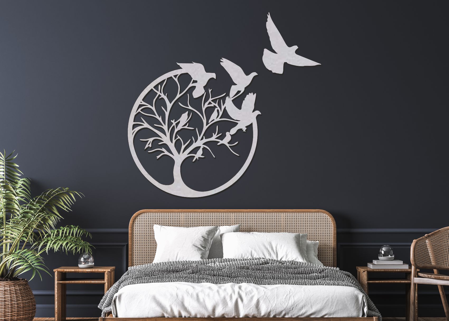 🌳 Drevený obraz – Strom života s vtákmi zobrazuje symbolický prechod medzi stabilitou a slobodou. Kým korene a vetvy predstavujú pevnosť a životnú energiu, odlietajúce vtáky prinášajú pocit slobody, nádeje a ľahkosti.