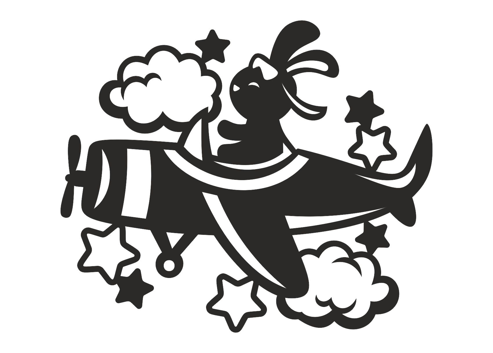 Drevený obrázok do detskej izby – zajačik v lietadle