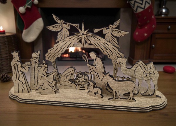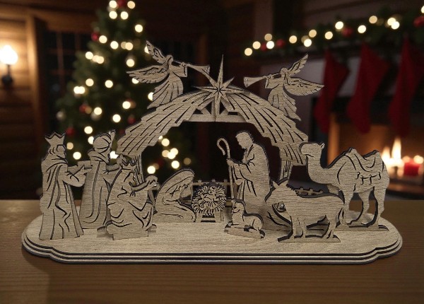 Drevený vyrezávaný betlehem – elegantná vianočná dekorácia