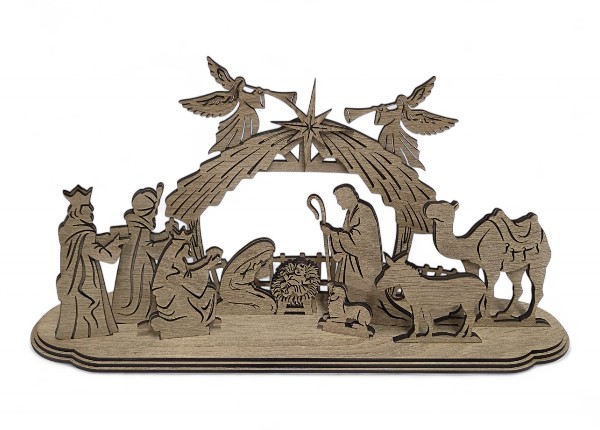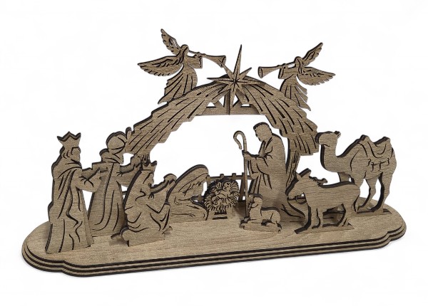 Tento betlehem je vyrobený z kvalitného prírodného dreva, čo mu dodáva nadčasový vzhľad a dlhú životnosť 🌲. Jemné laserové alebo ručné gravírovanie zvýrazňuje kontúry postavičiek a dodáva scéne elegantnú hĺbku, vďaka čomu pôsobí dekorácia moderne, no zároveň si zachováva tradičný charakter Vianoc.