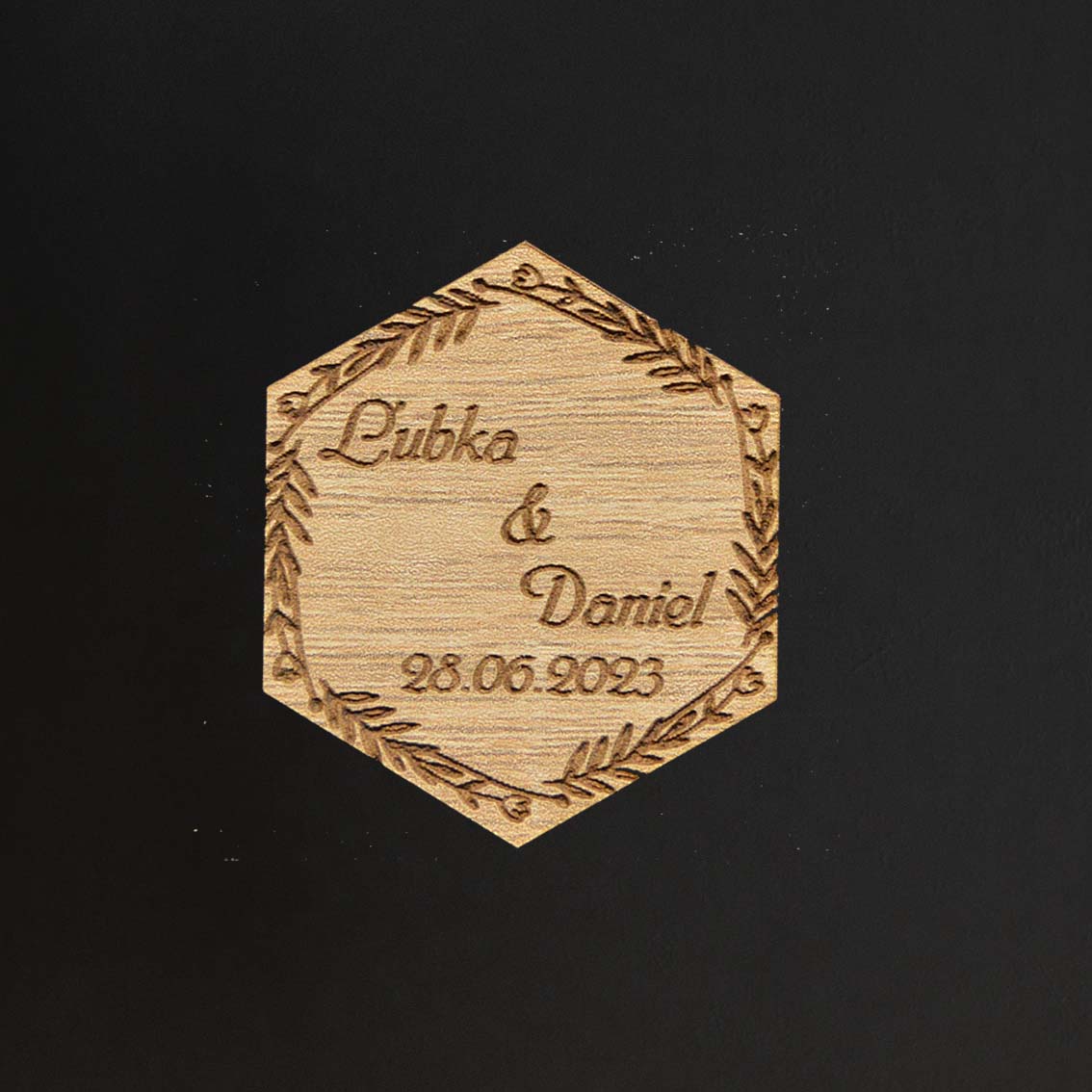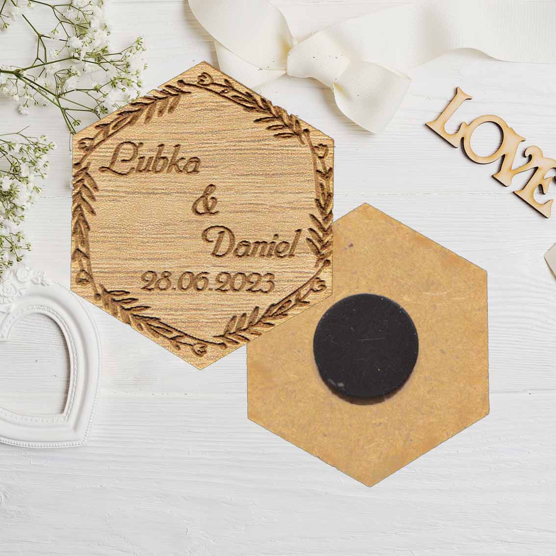 Predstavte si, že každé ráno, keď si prídete pre kávu alebo čaj, vaše oči spočinú na malebnom kúsku dreva, ktorý v sebe ukrýva viac než len krásu prírodného materiálu. Naša svadobná magnetka je nielen krásnym dekorom, ale aj neustálou pripomienkou jedného z najdôležitejších dní vášho života.
