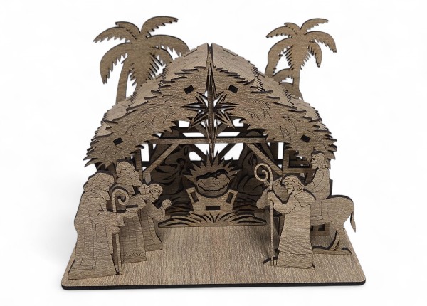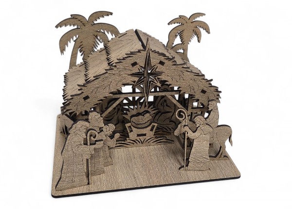 Betlehem je vytvorený z kvalitného prírodného dreva, ktoré zaručuje pevnosť, dlhú životnosť a nadčasový vzhľad. Každý detail – od jemne tvarovaných postavičiek až po realistickú textúru striešky – je vytvorený s maximálnou starostlivosťou, aby výsledok pôsobil harmonicky, elegantne a autenticky.